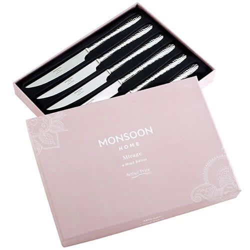 This set of 6 steak knives is part of the Mirage cutlery range from Arthur Price’s Monsoon collection.