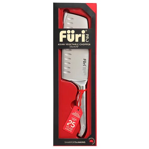The Furi Pro 15cm Asian Vegetable Chopper is ideally suited for preparing Asian cuisine. Its wide and sharp blade make light work of larger vegetables and meat. The depth of the blade also makes it ideal for smashing garlic cloves as well as scooping and transfering food. The blade features oversized scallops for easy food release.