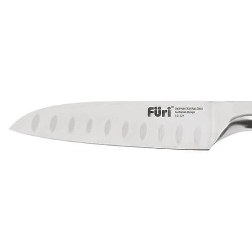 The Furi Pro Asian 12cm Utility Knife is a clever alternative to the western-style paring knife. It features a wider blade, giving it greater versatility, yet still retains the nimbleness of a paring knife. It also features scallops on the blade to aid food release.