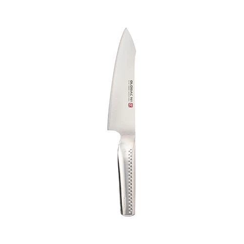 A perfect balance of modern design and precision makes this santoku knife ideal for slicing and dicing fruit and vegetables. The curve of the blade creates a rocking motion when chopping and deep blade width allows you to scoop up sliced food or crush garlic.