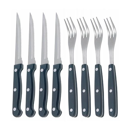 This stylish set of 4 steak knives and fork set are made with durable stainless steel.