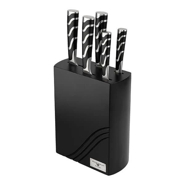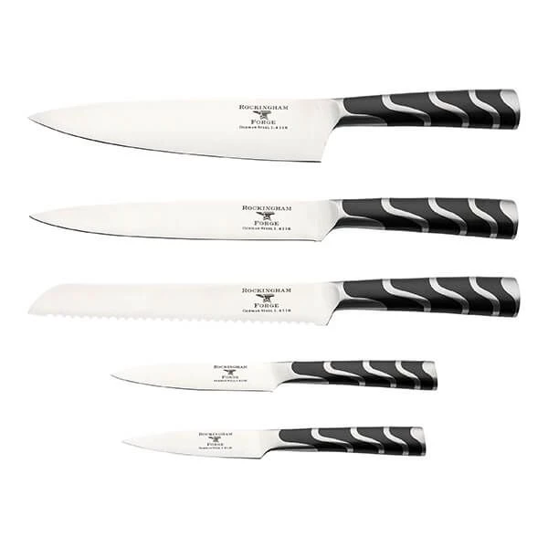 Each knife from the Rockingham Forge RF-1280 Series 6 Piece Knife Block Set boasts a a high quality German steel blade that can be sharpen easily and is both rust and corrosion resistant.