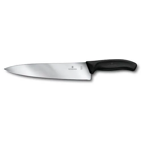 This Victorinox 25cm Carving Knife features a black textured and ergonomic handle providing a firm and comfortable grip when in use.